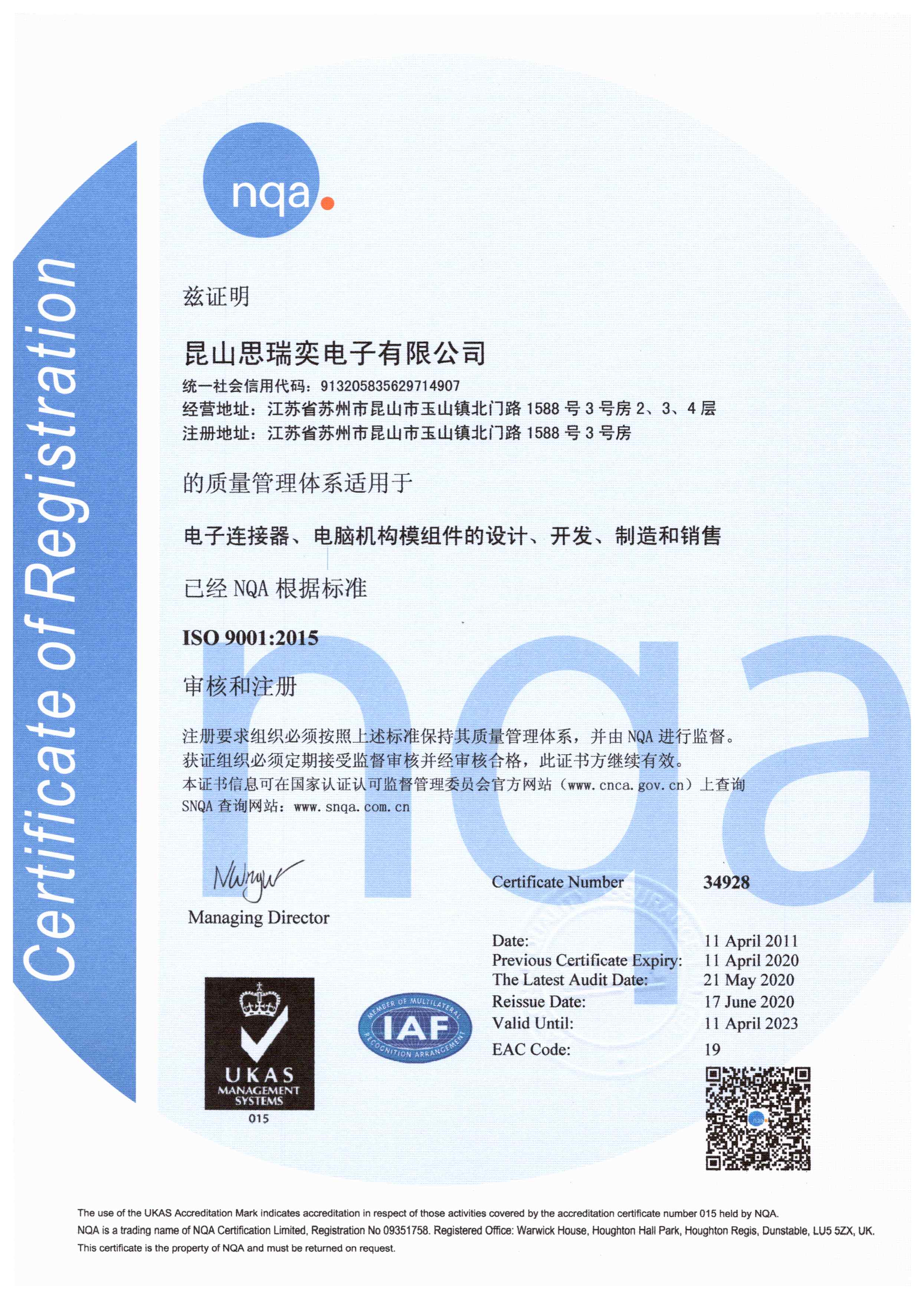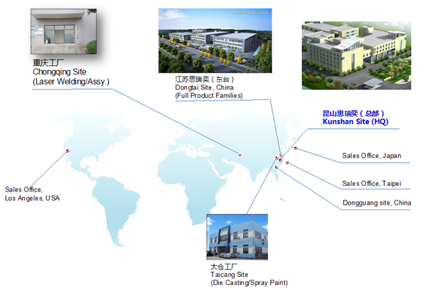 思瑞奕電子有限公司成立于2010年10月,注冊(cè)資金7500萬人民幣,總部位于江蘇省昆山市,在重慶、江蘇東臺(tái)、江蘇太倉設(shè)有分廠,公司于2011年通過ISO9001/ISO14001認(rèn)證,2013年通過高新技術(shù)企業(yè)和TS16949(IATF)體系認(rèn)定,2016年先后通過知識(shí)產(chǎn)權(quán)管理體系認(rèn)證、安全生產(chǎn)標(biāo)準(zhǔn)化認(rèn)證,2017年獲頒江蘇省民營科技企業(yè)、2018年先后獲得蘇州市人民政府認(rèn)定企業(yè)技術(shù)中心、科技部認(rèn)定中小型科技企業(yè)、江蘇省最具成長性高科技企業(yè)、2020年獲得江蘇省人民政府認(rèn)定企業(yè)技術(shù)中心、2021年獲得蘇州市瞪羚計(jì)劃入庫企業(yè)、江蘇省省級(jí)工程技術(shù)研究中心、江蘇省專精特新中小企業(yè)等榮譽(yù)稱號(hào)......